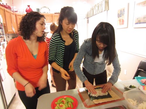 Actually, we all gave ourselves a lesson on how to make kimbap. Trial by fire!