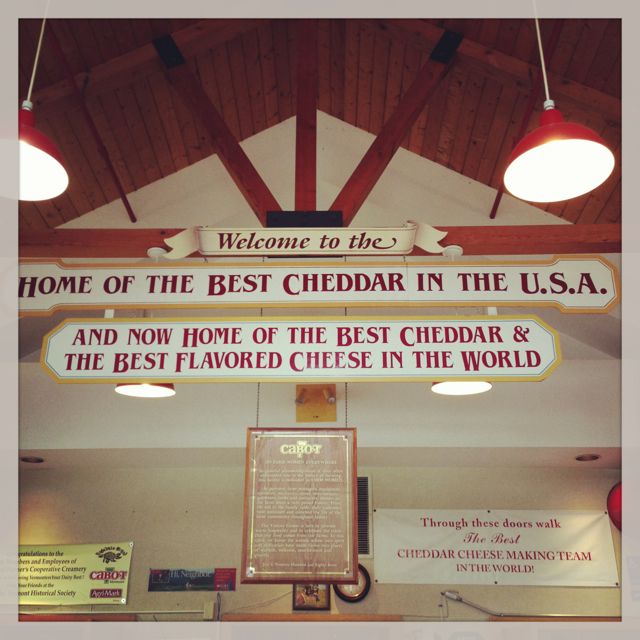 Cabot CreameryThere may not be any cellphone service at Cabot, but there are tons of cheese curds! We went on a brief tour where we could see cheese curds being pressed into 42-pound packages. We even watched a special video about cheese-making at Cabot in a viewing room full of awards: